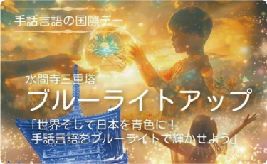 「手話言語の国際デー」水間寺三重塔ブルーライトアップ