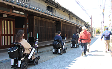 長時間歩くのが難しい方も、次世代ライドアクティビティのロボティックモビリティを使って、家族や友人と一緒に貝塚寺内町のまち歩きを楽しむモニターツアーを実施しました。